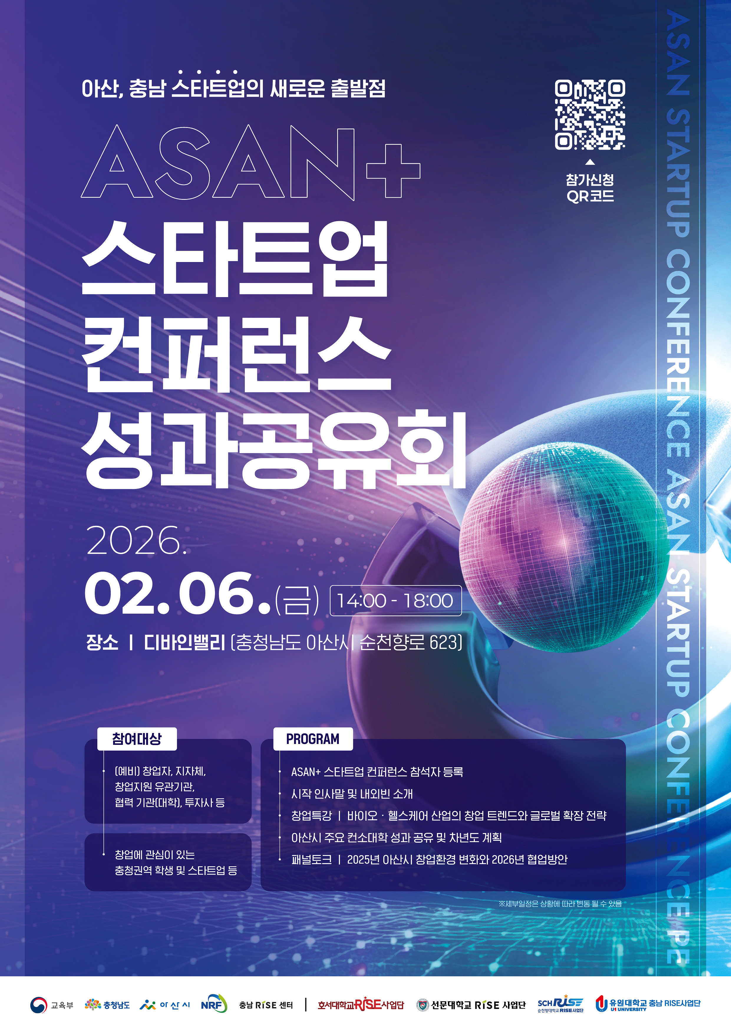 「ASAN+ 스타트업 컨퍼런스」 성과공유회는 아산시를 중심으로 한 정주 기반 창업 생태계 조성과 충남 지역 스타트업의 성장 및 투자 연계 활성화를 목표로 마련된 종합 창업 컨퍼런스입니다.